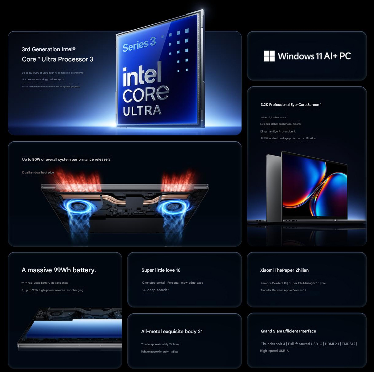 Det finns tre huvudkonfigurationer tillgängliga för de två, och basalternativet har Intel Core Ultra 5 325, en mellanklassprocessor från linjen. Den är ihopkopplad med 24 GB RAM och 1 TB lagringsutrymme. Den andra konfigurationen höjer den till Core Ultra 5 338H, ett mer kapabelt alternativ med Arc B370 iGPU. Xiaomi parade ihop detta alternativ med 32 GB RAM och 1 TB lagringsutrymme.