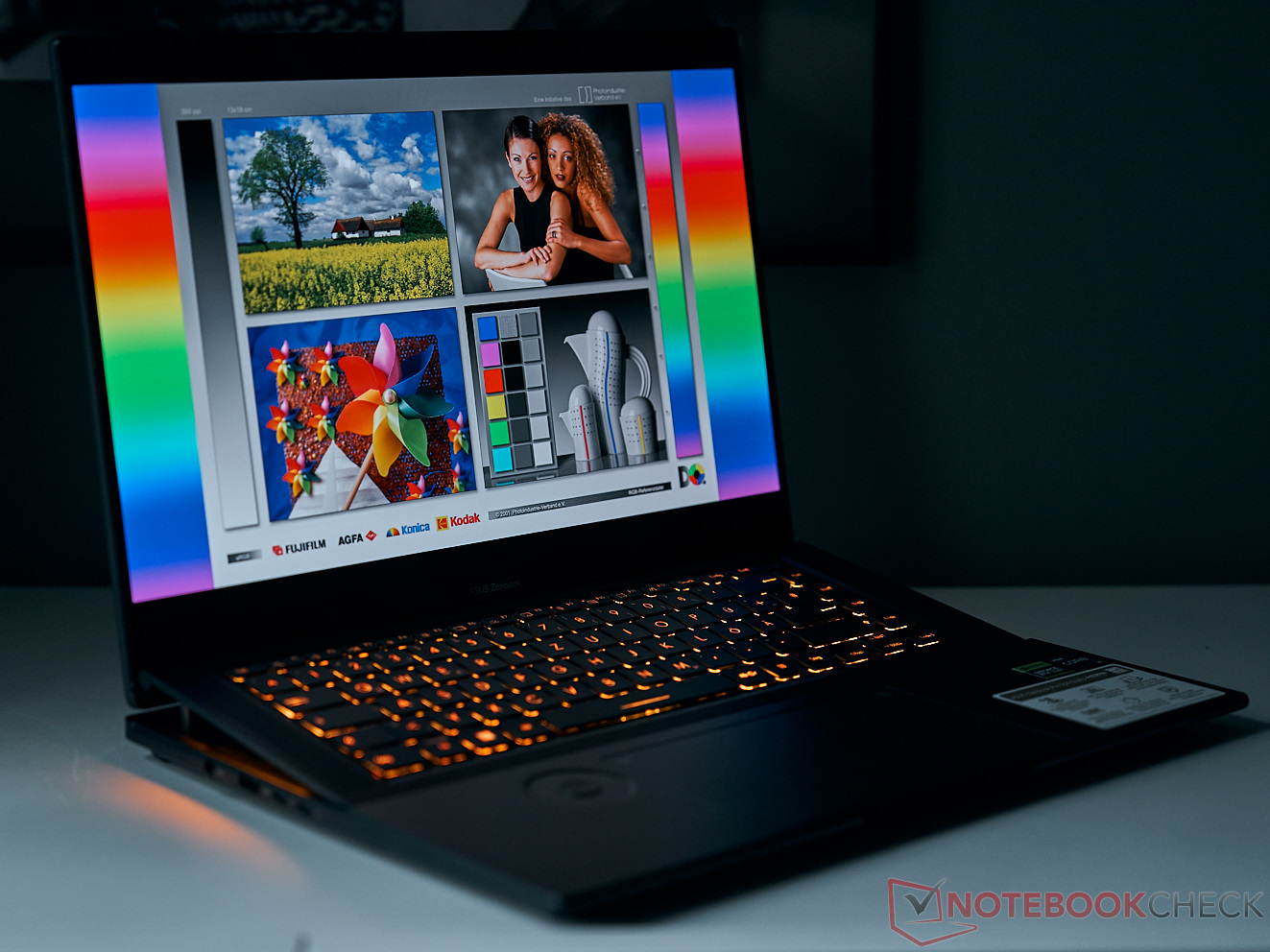 Liksom föregångaren, är skärmen i den nuvarande Zenbook Pantone-certifierad. Den har en ljusstyrka på 350 cd/m² och en bildfrekvens på 120 Hz. I typisk Asus-stil finns det olika valfria inställningar för skärmen i MyAsus-appen. Skärmtesterna utfördes först i native-läge och sedan i DisplayP3-läge.