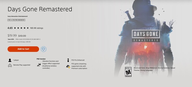 Days Gone Remastered lanserades i slutet av april 2025 med en prislapp på 49,99 USD på PlayStation 5, medan ägare av PlayStation 4-versionen kunde köpa uppgraderingen för bara 10 USD. Det har fått ett antal rabatter sedan dess, men den senaste sänker det priset med 60 % fram till den 23 april, och spelet finns nu tillgängligt på PlayStation Store för 19,99 USD - det lägsta priset någonsin. Eftersom det är en relativt ny PlayStation-exklusivvara är det här förmodligen det billigaste det kommer att vara på ett tag också.