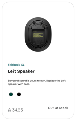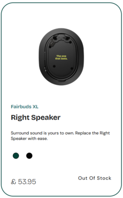 Under tiden har många reservdelar dykt upp på Fairphones onlinebutik. Ett par nya element för båda Fairbuds XL-modellerna kostar t.ex. 101,90 € / 88,90 £, där det högra elementet kostar något mer eftersom det innehåller en del av elektroniken. Andra komponenter som listas är ett ersättningsbatteri (19,95 € / 17,95 £), öronkuddar (14,95 € / 12,95 £) samt det nya huvudbandet, kabeln och huvudbandsskyddet i tyg, med priser från 15 € / 13 £ till 20 € / 18 £