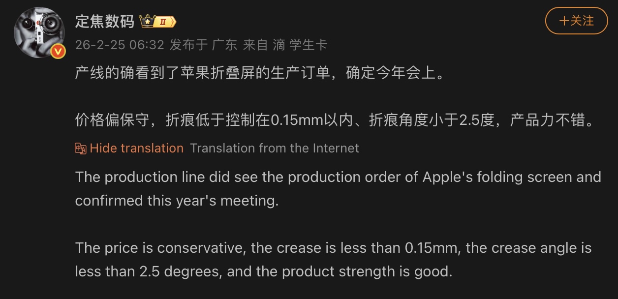 Fixed Focus Digital nämnde också att priset för iPhone Fold är "konservativt" och att produktstyrkan är "bra", men delade inte med sig av några exakta mätningar eller datapunkter. Med tanke på att Z Fold 7 för närvarande kostar strax under 2 000 dollar (för närvarande 1 810 dollar på Amazon), kan vi lätt förvänta oss att iPhone Fold blir minst lika dyr.