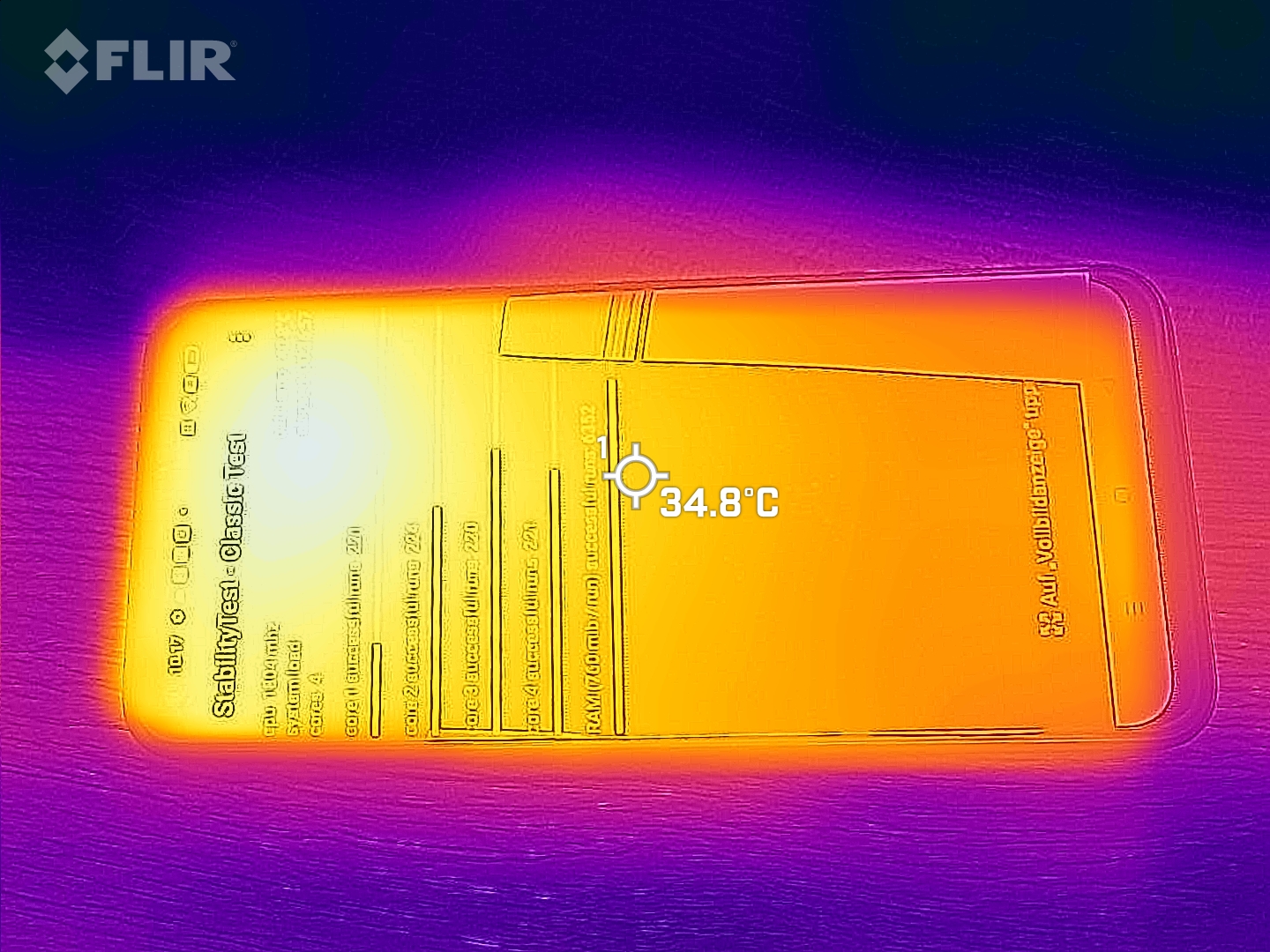 (±) Den maximala temperaturen på ovansidan är 42.5 °C / 109 F, jämfört med genomsnittet av 35.2 °C / 95 F , allt från 21.9 till 247 °C för klassen Smartphone.