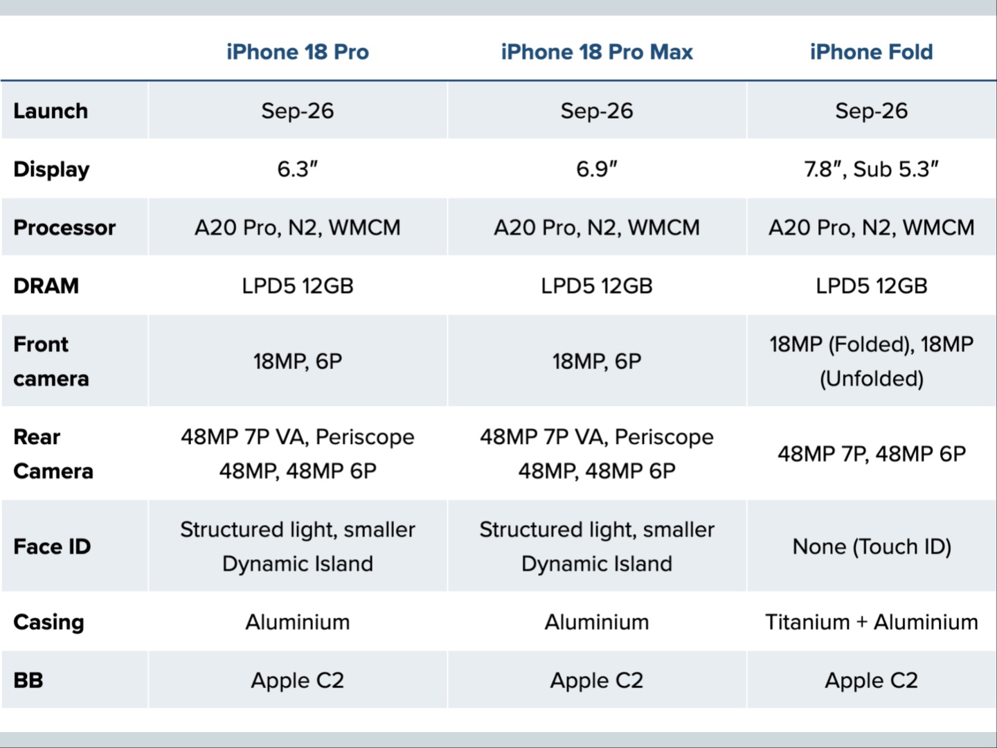 När det gäller lanseringstidslinjen har det länge ryktats att Apple kommer att förskjuta sin lansering av iPhone 18-serienmed 18 Pro, Pro Max och Fold som släpps i år. Basen iPhone 18 och iPhone 18e, å andra sidan, kommer att anlända 2027, tillsammans med iPhone Air 2.